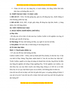 - HS tiếp cận với tri thức về nhà toán học Galileo Galilei và thí nghiệm của ông, từ