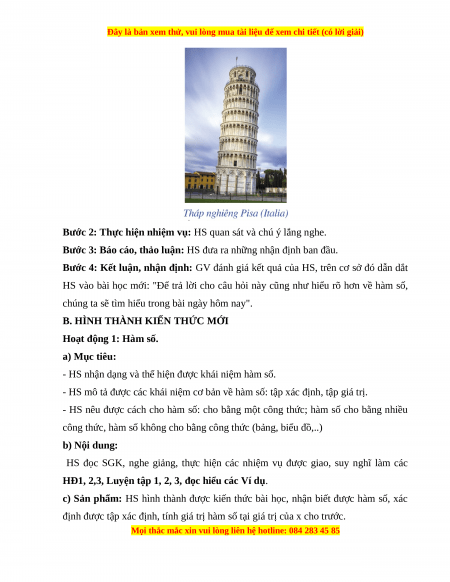 công thức, hàm số không cho bằng công thức (bảng, biểu đồ,..) b) Nội dung: