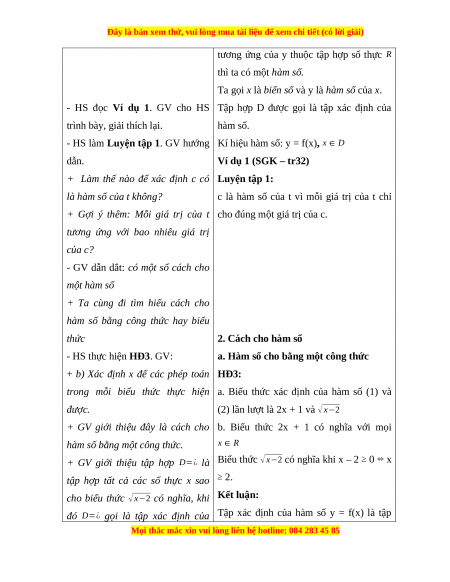 - HS nêu được cách cho hàm số: cho bằng một công thức; hàm số cho bằng nhiều
