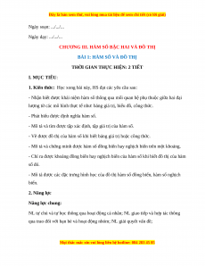 - Mô tả được các đặc trưng hình học của đồ thị hàm số đồng biến, hàm số nghịch biến. 2. Năng lực Năng lực chung: