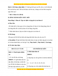 - HS nhận biết và làm quen với các dạng hàm số: hàm số cho bằng bảng; hàm số
