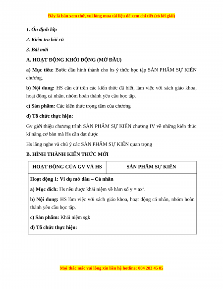 Gv giới thiệu chương trình SẢN PHẨM SỰ KIẾN chương IV về những kiến thức