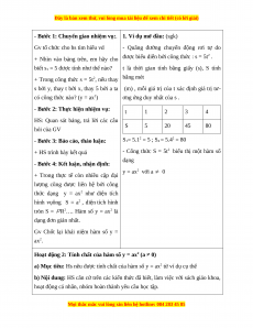 - Năng lực chuyên biệt: Biết cách tính giá trị hàm số tương ứng với giá trị cho trước của biến số. 3- Phẩm chất