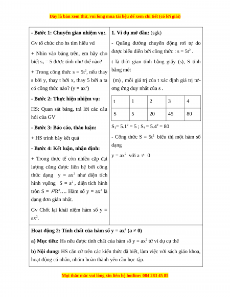 a) Mục đích: Hs nêu được khái niệm về hàm số y = ax2.