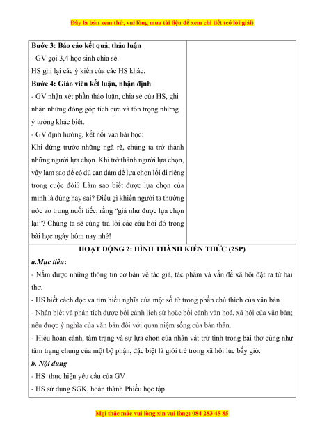 - Hiểu hoàn cảnh, tâm trạng và sự lựa chọn của nhân vật trữ tình trong bài thơ cũng như