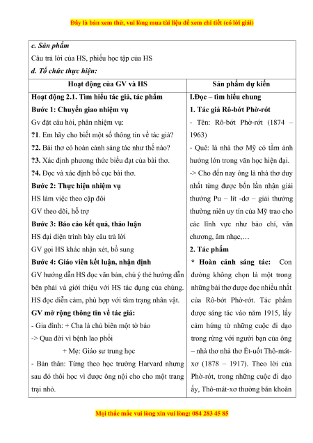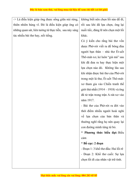 - HS biết vận dụng các tri thức về thơ để chiếm lĩnh bài thơ của Rô-bớt Phờ-rót.