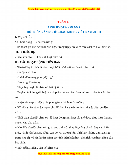 Giáo án HĐTN 1 Cánh diều Tuần 11