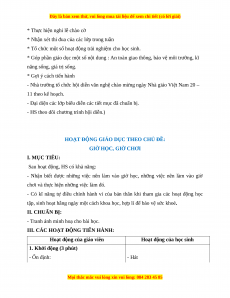 HOẠT ĐỘNG GIÁO DỤC THEO CHỦ ĐỀ: