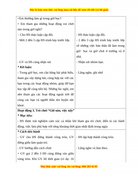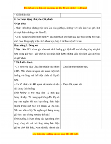 hợp trong giờ học, giờ chơi từ đó nhận biết được những việc nên làm vào giờ học và giờ chơi.