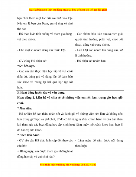 sinh hoạt hằng ngày một cách khoa học, hợp lí để bảo vệ sức khoẻ. Hoạt động 1. Đóng vai