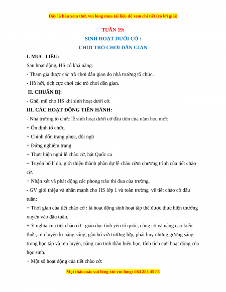 Giáo án HĐTN 1 Cánh diều Tuần 19