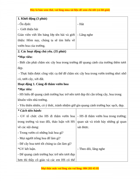 - Biết cần phải chăm sóc cây hoa trong trường để quang cảnh của trường thêm tươi đẹp.