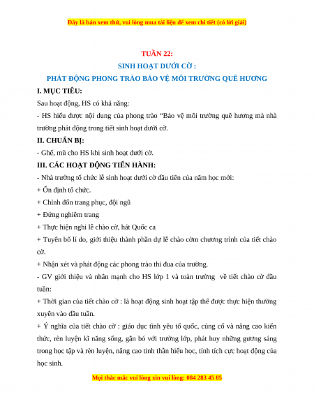 trường phát động trong tiết sinh hoạt dưới cờ. II. CHUẨN BỊ: