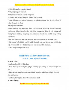 GIỮ GÌN CẢNH ĐẸP QUÊ HƯƠNG I. MỤC TIÊU: