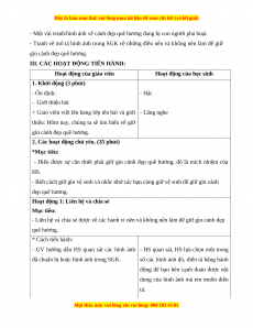 III. CÁC HOẠT ĐỘNG TIẾN HÀNH: