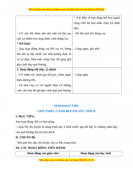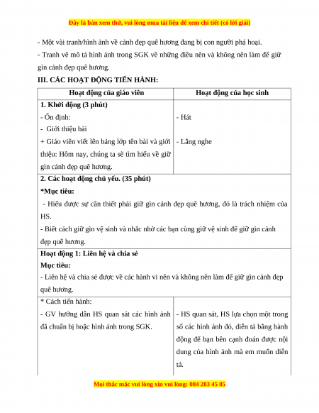 - Liên hệ và chia sẻ được về các hành vi nên và không nên làm để giữ gìn cảnh đẹp quê hương. * Cách tiến hành: