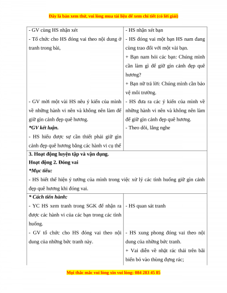 3. Hoạt động luyện tập và vận dụng. Hoạt động 2. Đóng vai *Mục tiêu:
