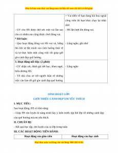- Giúp HS rèn luyện kĩ năng trình bày ý kiến trước tập thể lớp về những cảnh đẹp