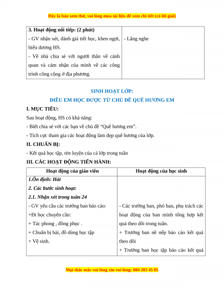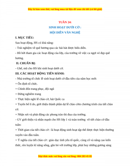 Giáo án HĐTN 1 Cánh diều Tuần 24