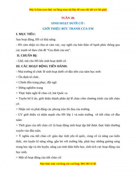 - GV giới thiệu và nhân mạnh cho HS lớp 1 và toàn trường về tiết chào cờ đầu tuần: