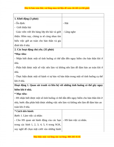 - Thực hiện được một số hành vi tự bảo vệ bản thân trong một số tình huống cụ thể khi ở nhà.