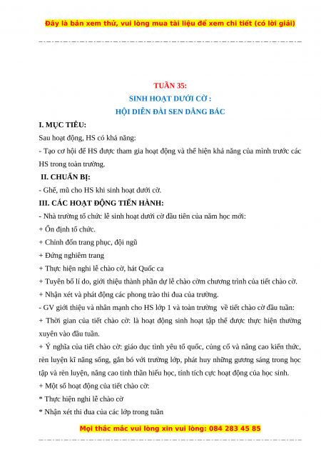 TÀI LIỆU BỘ BÁN CHẠY MÔN Hoạt động trải nghiệm