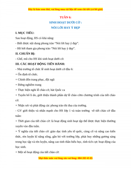 - Nhà trường tổ chức lễ sinh hoạt dưới cờ đầu 6: + Ổn định tổ chức.