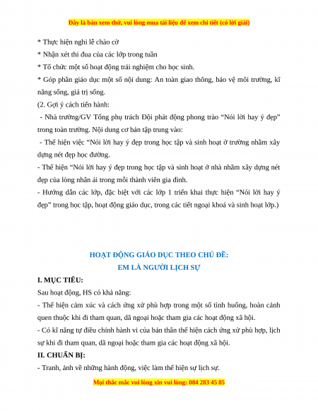 - Nhà trường/GV Tổng phụ trách Đội phát động phong trào “Nói lời hay ý đẹp”