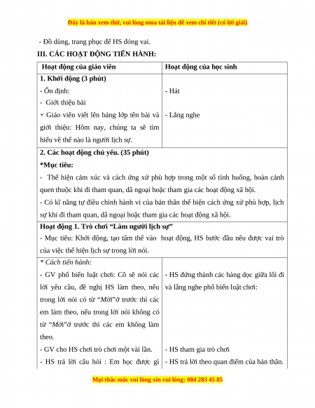 EM LÀ NGƯỜI LỊCH SỰ I. MỤC TIÊU: