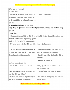 - HS quan sát tranh để bày tỏ thái độ và tự liên hệ về cách ứng xử lịch sự của bản