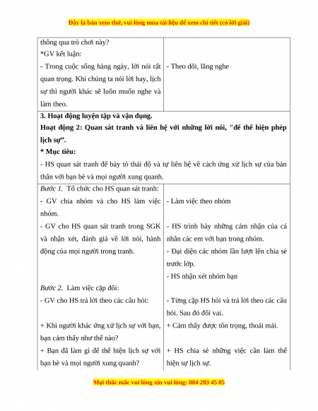 Hoạt động 2: Quan sát tranh và liên hệ với những lời nói, "để thể hiện phép