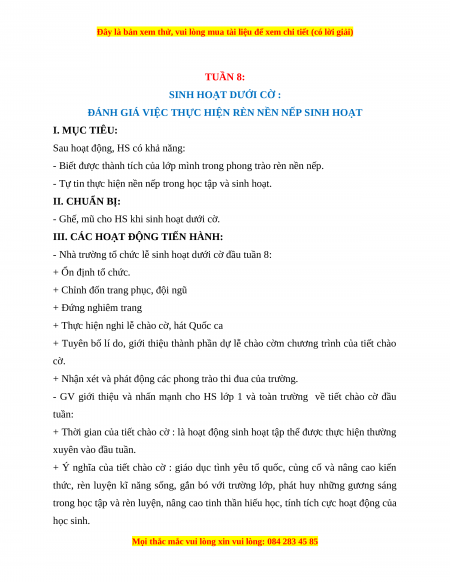 - Nhà trường tổ chức lễ sinh hoạt dưới cờ đầu tuần 8: + Ổn định tổ chức.