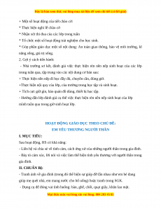 EM YÊU THƯƠNG NGƯỜI THÂN I. MỤC TIÊU: