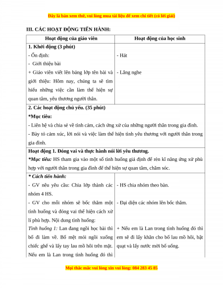 III. CÁC HOẠT ĐỘNG TIẾN HÀNH:
