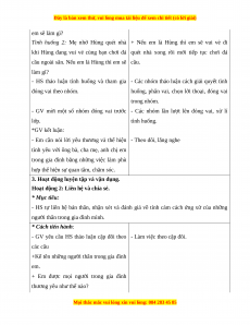 - HS thảo luận tình huống và tham gia - Các nhóm thảo luận cách giải quyết tình đóng vai theo nhóm.