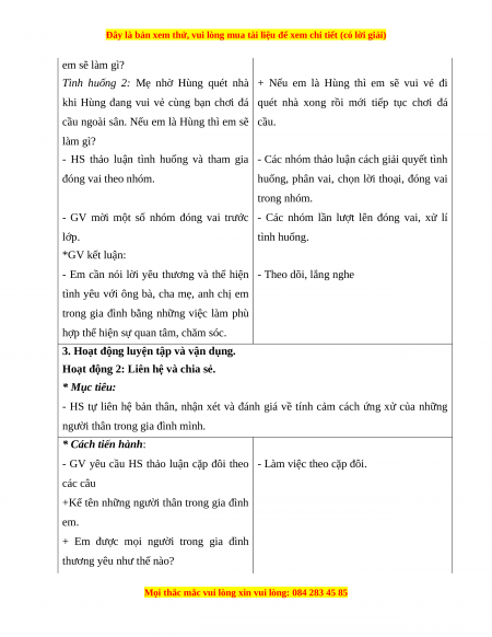 - Liên hệ và chia sẻ về tình cảm, cách ứng xử của những người thân trong gia đình.