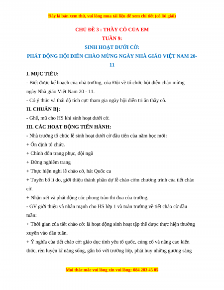 CHỦ ĐỀ 3 : THẦY CÔ CỦA EM TUẦN 9: