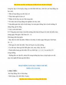 HOẠT ĐỘNG GIÁO DỤC THEO CHỦ ĐỀ: THẦY CÔ CỦA EM I. MỤC TIÊU: