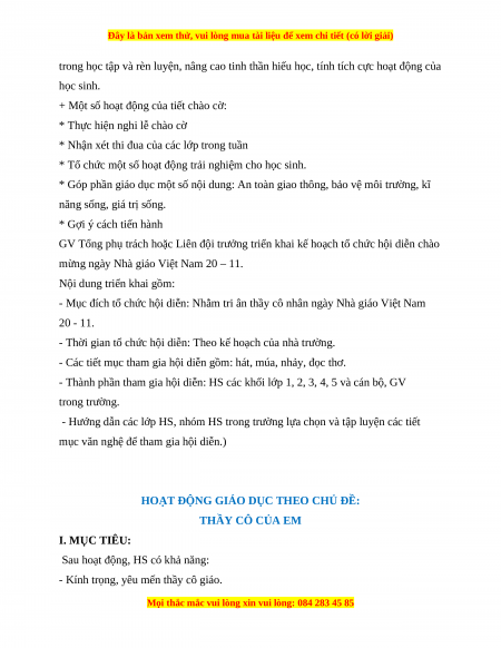 Bộ giáo án Hoạt động trải nghiệm lớp 1 Cánh diều được cập nhật liên tục trong gói này từ nay đến hết tháng 3/2024.