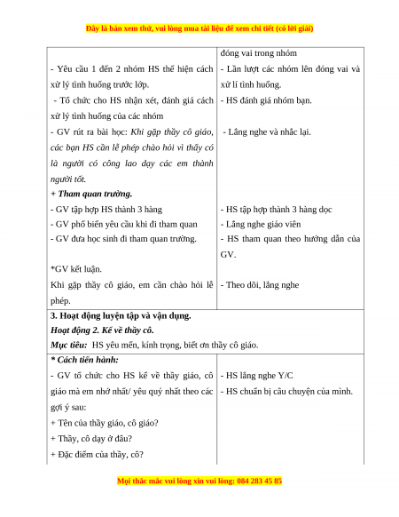 Khi gặp thầy cô giáo, em cần chào hỏi lễ - Theo dõi, lắng nghe phép.