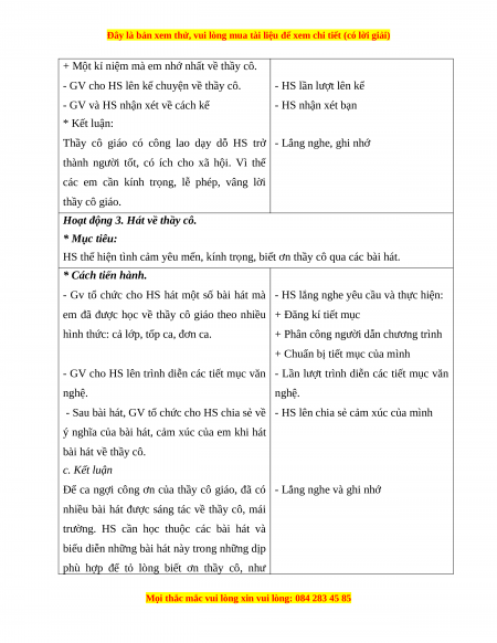 Hoạt động 3. Hát về thầy cô.