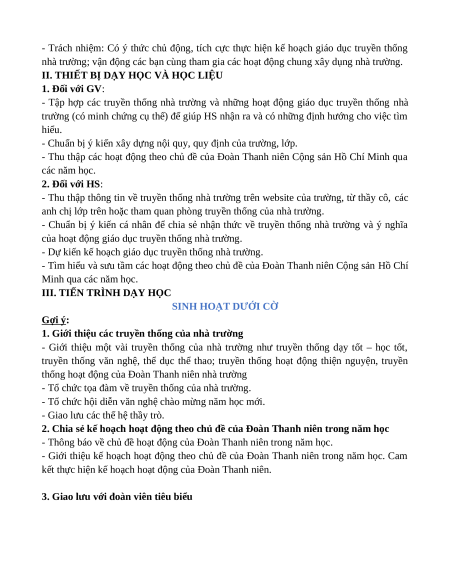 - Dự kiến kế hoạch giáo dục truyền thống nhà trường.