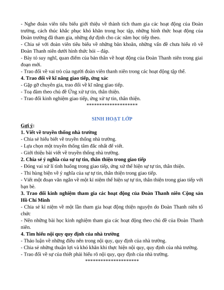 - Trao đổi kinh nghiệm giao tiếp, ứng xử tự tin, thân thiện. ******************** SINH HOẠT LỚP Gợi ý: