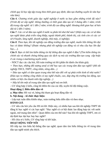 được đào tạo, luật quy định về việc giáo dục đào tạo nghề,…về các lớp trước một tuần để HS chuẩn bị.