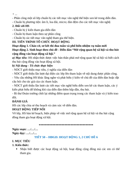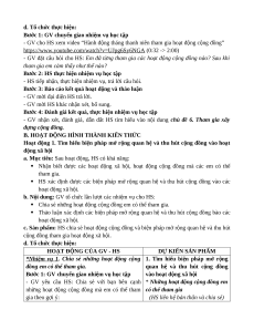 TIẾT 50 – HĐGD: HOẠT ĐỘNG 1, 2 CHỦ ĐỀ 6 I. MỤC TIÊU 1. Kiến thức: