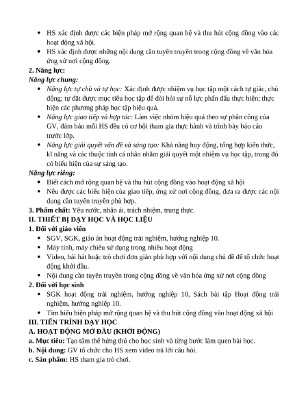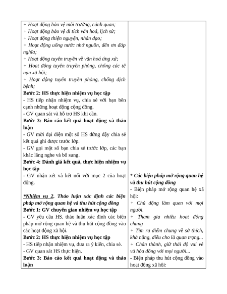 HS xác định được các biện pháp mở rộng quan hệ và thu hút cộng đồng vào các hoạt động xã hội.