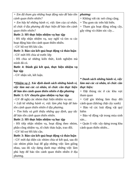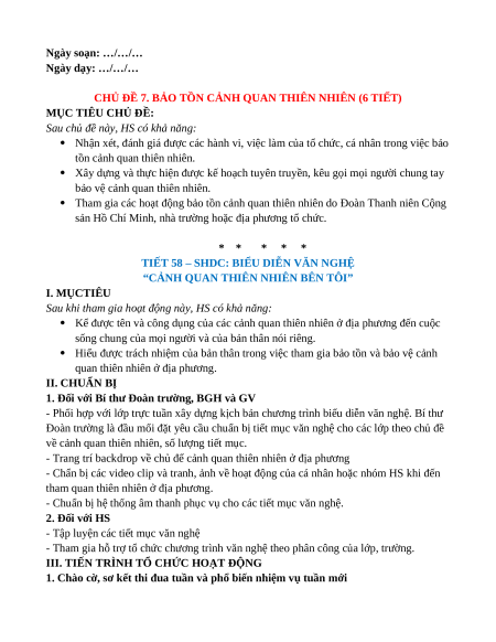 Giáo án HĐTN 10 Kết nối tri thức Chủ đề 7. Bảo tồn cảnh quan thiên nhiên