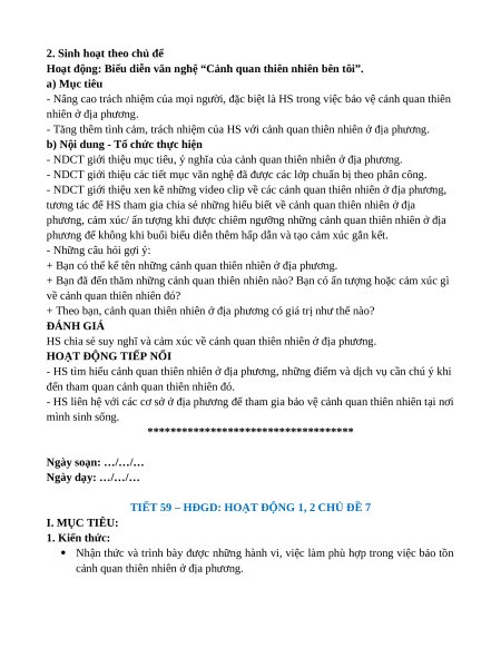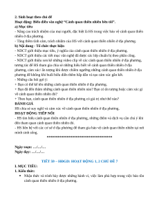 TIẾT 59 – HĐGD: HOẠT ĐỘNG 1, 2 CHỦ ĐỀ 7 I. MỤC TIÊU: 1. Kiến thức: