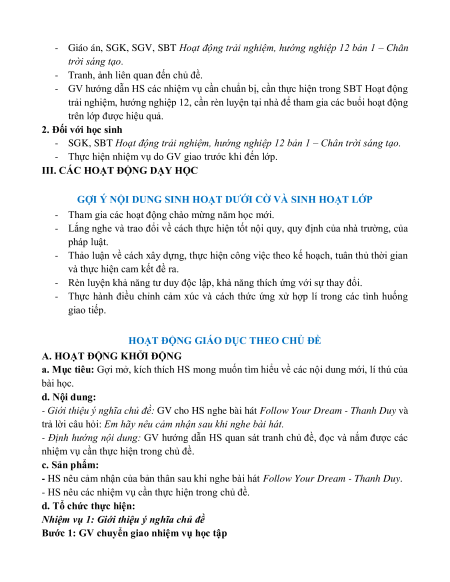 - Giáo án, SGK, SGV, SBT Hoạt động trải nghiệm, hướng nghiệp 12 bản 1 – Chân trời sáng tạo.