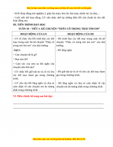 - Tiết 1: Sinh hoạt dưới cờ: Kể chuyện “Thầy cô trong trái tim em”